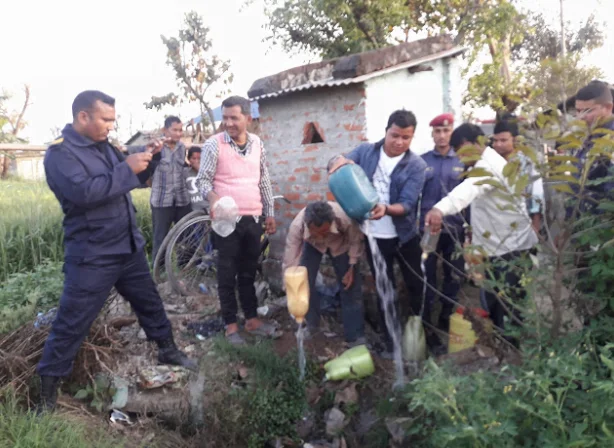 लाल बहादुर एसके पुनर्वास,कञ्चनपुर ।। कञ्चनपुरको पुनर्वास नगरपालिका वडा नम्बर ९ बिचफाँटामा आज प्रहरी, जननिर्वाचित प्रतिनिधि तथा घरेलु मदिरा नियन्त्रण समितिको संयुक्त प्रयासमा ४० लिटर घरेलु मदिरा नियन्त्रण गरि नष्ट