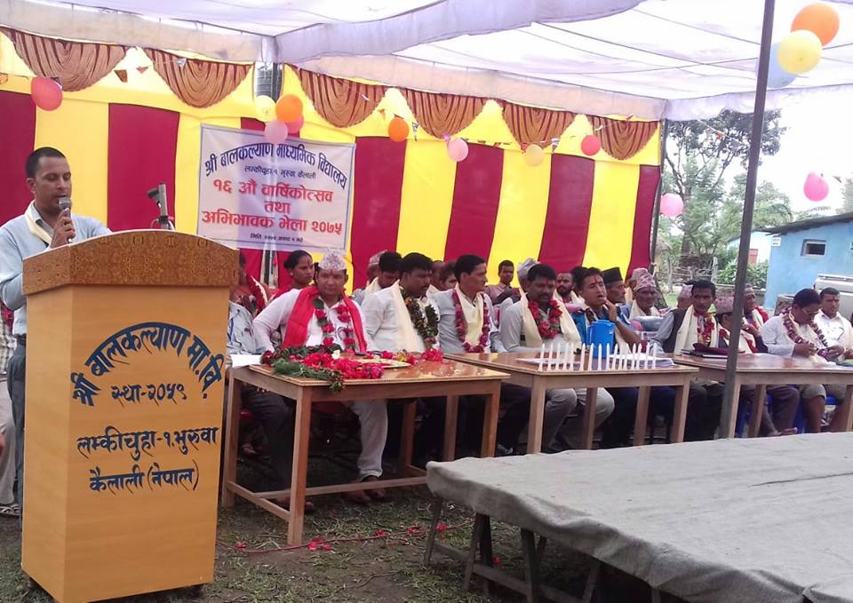 लम्कीचुहा नगरपालिकाको वडा नम्बर १ लम्की भुरुवामा रहेको बालकल्याण माध्यमिक बिद्यालयको १६ औं वार्षिकोत्सब तथा अभिभावक भेला आज सम्पन्न भएको छ । विद्यालय व्यवस्थापन समितिका अध्यक्ष रतन सुनारको सभापतित्वमा भएको कार्यक्रमका प्रमुख अतिथि लम्कीचुहा नगरपालिकाका नगर् प्रमुख महादेब बजगाई रहनु भएको थियो ।