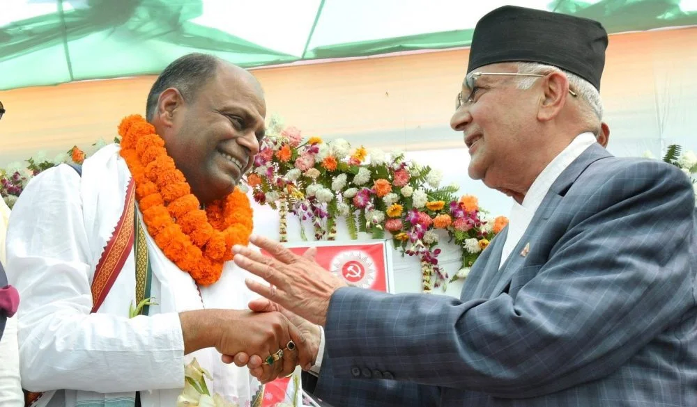 वीरगन्ज । बाराको आदर्श कोटवाल गाउँपालिकाका अध्यक्षसहित जसपा नेताहरुलाई एमाले प्रवेश गराउन वीरगन्ज पुगेका एमाले अध्यक्ष केपी शर्मा ओलीले सरप्राइज दिँदै वीरगन्ज महानगरपालिकाका मेयर विजय सरावगीलाई एमालेमा स्वागत गरेका छन् ।