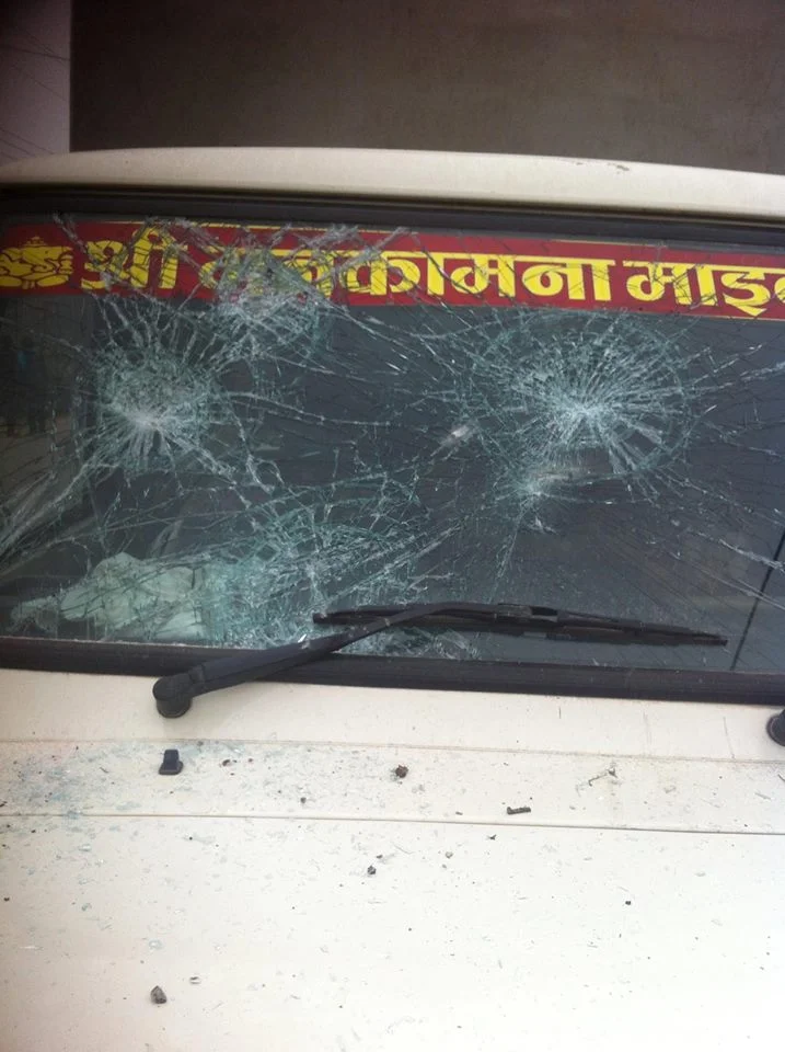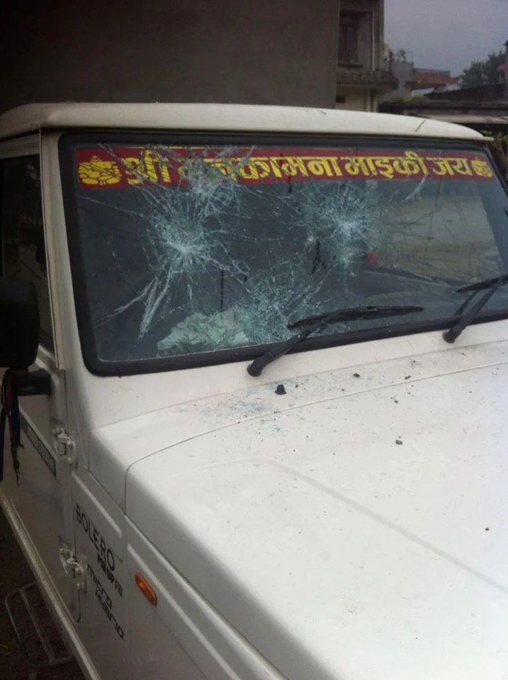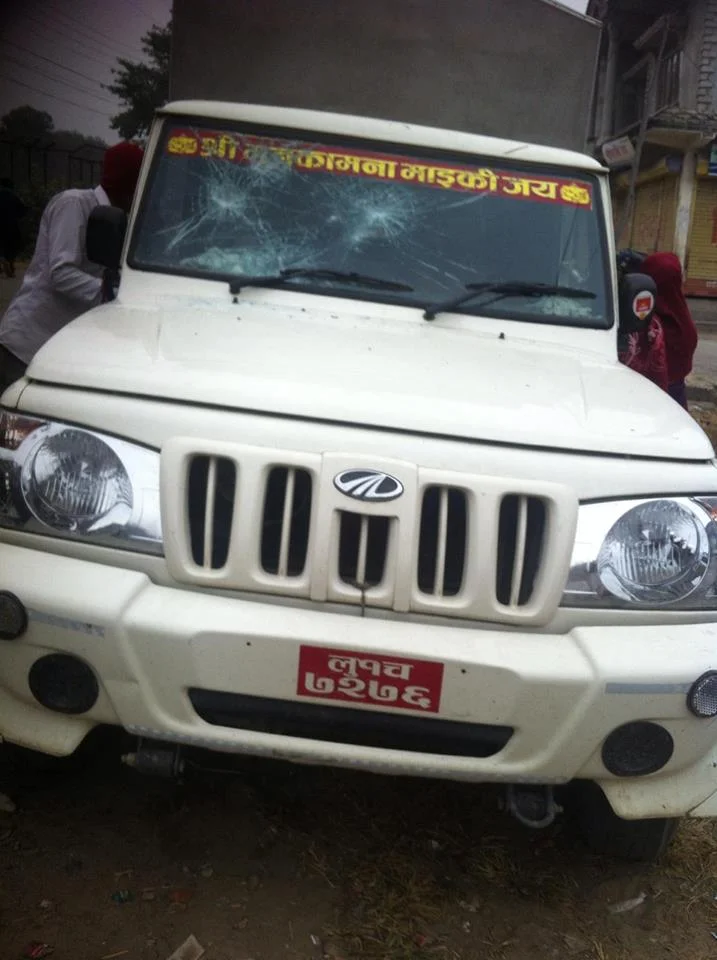 बुटवलमा हरियो तरकाली बोकेको गाडी तोडफोड