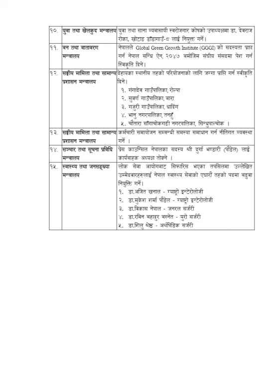 युवा तथा साना व्यवसायी स्वरोजगार कोषको उपाध्यक्षमा डा. देवराज रोक्कालाई नियुक्त गर्ने निर्णय पनि सरकारले गरेको छ ।