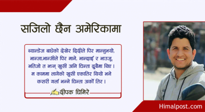 –दीपक घिमिरे चिल्ला सडक , ठुला महल अनि सस्तो गाडी र रमाइलो जीवन देखेर मन खुसी हुँदै थियो, एक्कासि भान्दाईले अफर गर्नु भो “भाँडा माझ्न त सक्चस नि ?” म