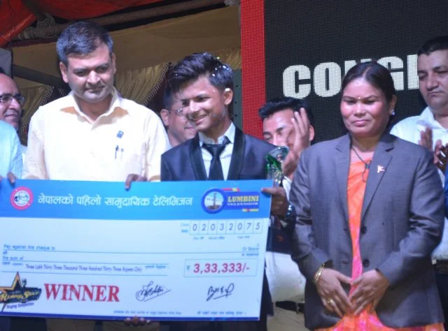 बुटवल । लुम्बिनी राईजिङ स्टार सिजन टु बाट बुटवलका संगित पौडेल विजेता बनेका छन् । लुम्बिनी टेलिभिजनबाट पांच महिनादेखि प्रशारण भईरहेको लुम्बिनी राईजिङ स्टार टु मा ७१ जना प्रतिष्प्रर्धीलाई पछाडी