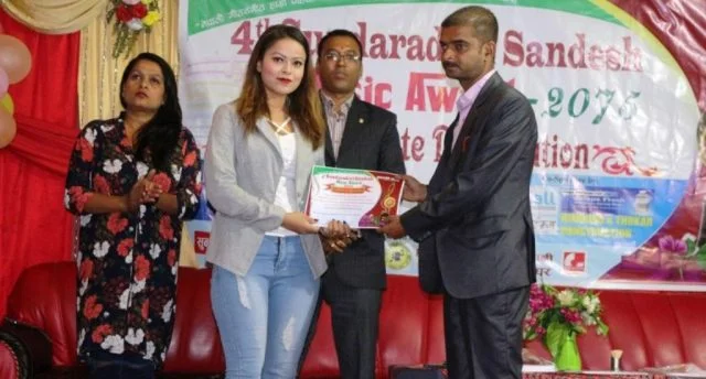 चौथो संस्करणको ‘सुन्दरादेवी सन्देश म्युजिक अवार्डका ३८ विधामा अाइतबार उत्कृष्ट पाँचको मनोनयन भएको छ ।काठमाडौंको रातोपुलस्थित रकहाउस क्याफेमा अायोजित कार्यक्रममा उत्कृष्ट पाँचका सर्जकहरुलाई प्रमाणपत्र वितरण गरिएको हो । उत्कृष्ट पाँचलाई
