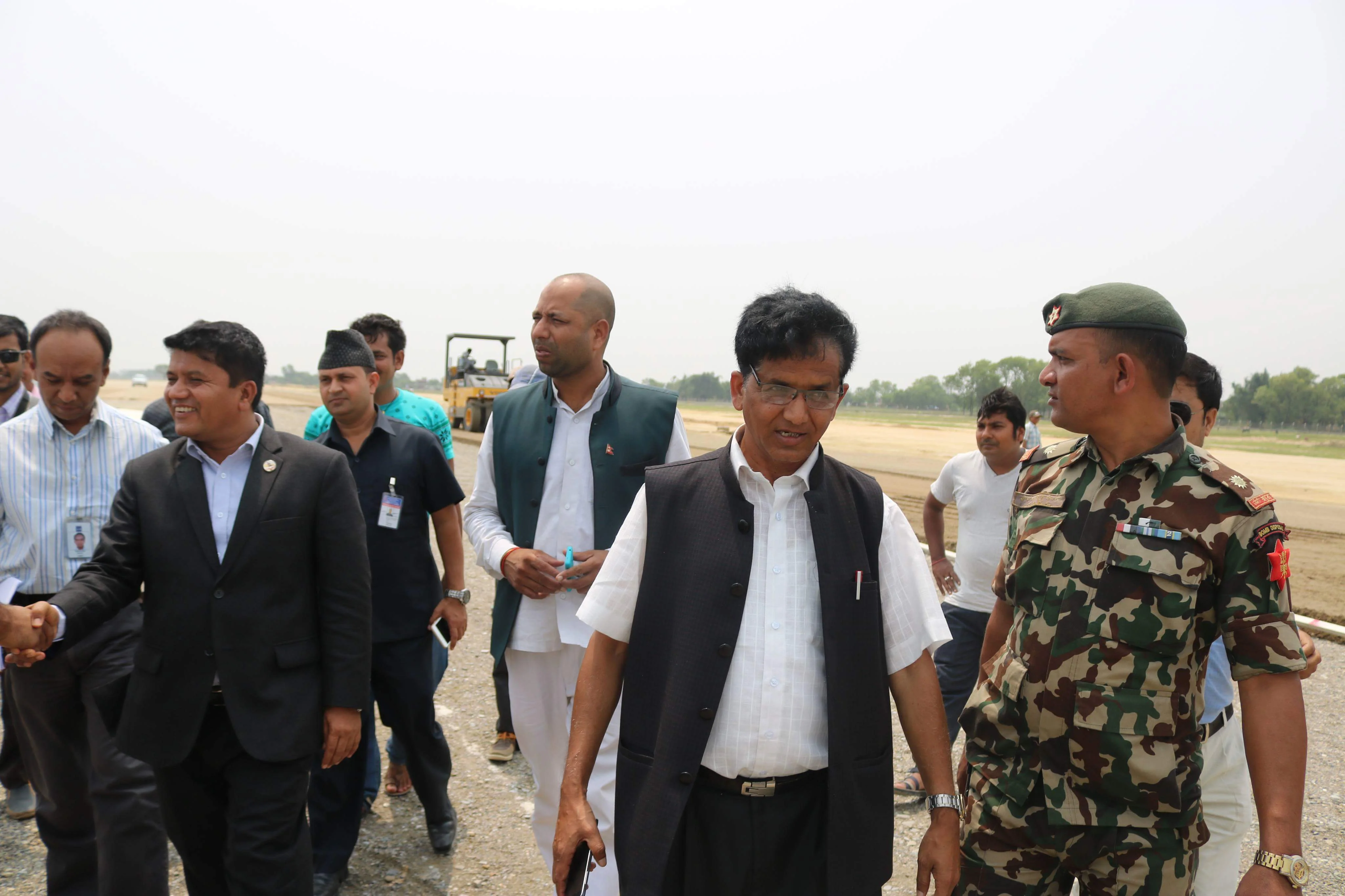 विमानस्थल निर्माण कार्यलाई तीव्रता साथ अगाडी बढाउन आवश्यक उपकरण थप्नुपर्ने उनको भनाइ थियो ।