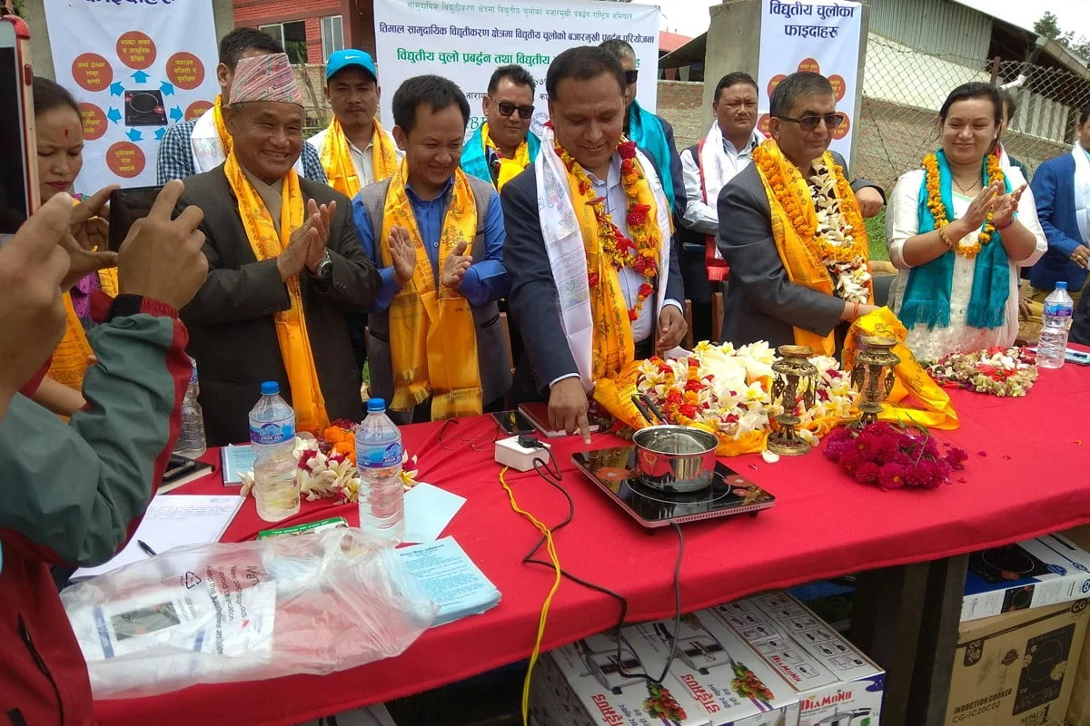 नेपाल विद्युत प्राधिकरणका कार्यकारी निर्देशक कुलमान घिसिङले शनिबार तेमाल गाउँपालिकाको नारायणस्थानमा आयोजित कार्यक्रममा उपभोक्ताहरुलाई इन्डक्सन चुलो वितरण गरी अभियानको सुरुआत गरेका हुन्।