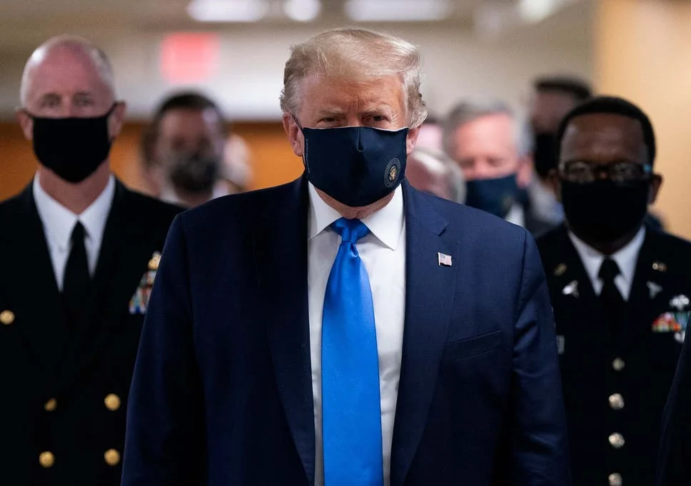 कोरोना भाइरसको महामारी सुरु भएदेखि नै मास्कको विपक्षमा आफूलाई प्रस्तुत गर्दै आएका र अरुले देख्ने गरी मास्क नलगाउने बताएका ट्रम्पले अन्ततः सार्वजनिक रुपमा प्रस्तुत हुँदा मास्क लगाएका हुन् ।