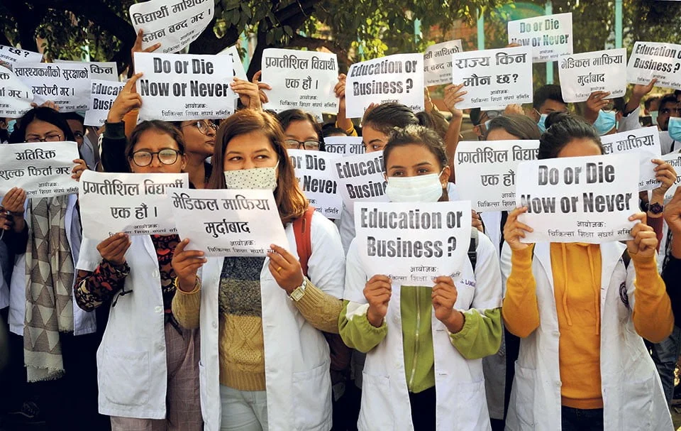 काठमाडौं- मेडिकल कलेजको पक्षपोषण हुने गरी सरकारले गरेको निर्णयले चिकित्सा शिक्षाका विद्यार्थी मर्कामा परेका छन्।