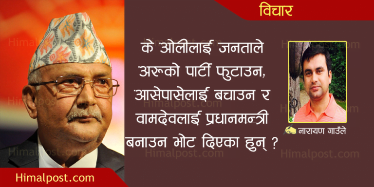 के केपी ओलीलाई अरूको पार्टी फुटाउनका लागि, आसेपासेलाई बचाउन र वामदेवलाई प्रधानमन्त्री बनाउन जनताले भोट दिएका हुन् ?