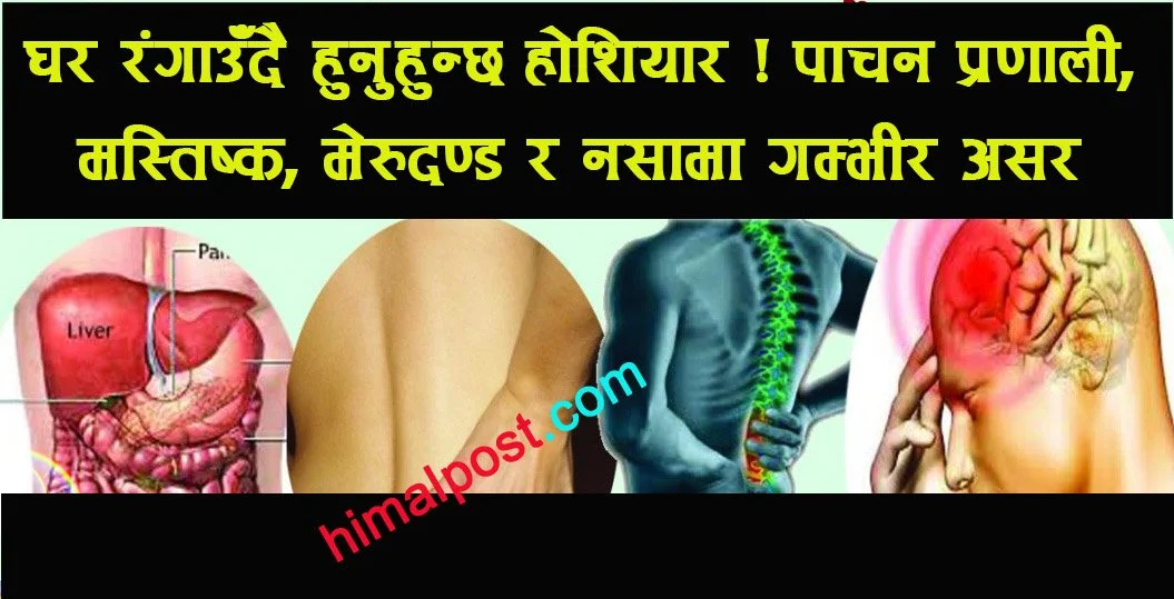 हरेक मानिसले एउटा मिठो सपना बुनेको हुन्छ । की एउटा राम्रो चिटिक्क परेको बगैँचासहितको आँगन भएको घर वा बंगला बनाउने र आकर्षित रंगले घर सजाउने । पक्कै पनि हो घर जस्तोसुकै आकार प्रकारमा बनाए पनि त्यसको साजसज्जालाई थप आकर्षित बनाउने भनेको बजारमा पाउने विभिन्न ब्राण्डका रङ्गहरू नै हुन् । त्यसमाथी चाडबाडका बेला घरमा पाहुनाहरू बोलाउँदा आफ्नो नयाँ घरमा बोलाउन पाउँदाको खुसी बेग्लै हुन्छ । जसले गर्दा मानिसहरू हत्तारमा बजारमा रङ्गरोगनका लागि राम्रो नराम्रो भन्दा पनि सस्तो बलियो र टिकाऊ हुने रङ्ग पाउँ भनेर बजारमा गएर किन्ने गरेको पाइन्छ । त्यसले आफ्नो परिवार र कामदारको स्वास्थ्यमा कत्तिसम्मको असर गर्दछ त्यसको मेसो कसैले पाउँदैन यहाँसम्म की त्यो रङ्गले स्वास्थ्यलाई असर गर्छ वा गर्दैनसमेत थाहाँ पाएको हुँदैन । त्योभन्दा बरु होलीका दिन खेलिने रङ्गले असर गर्छ भनेर मानिसहरू आफू, परिवार र अरूलाई सचेत गराउनतिर लाग्छ तर घर सजाउनलाई भनेर बजारबाट ल्याइने विभिन्न कम्पनीका रङ्गले स्वास्थ्यमा असर गर्छ वा गर्दैन कुनै ख्याल गरेको पाइँदैन ।