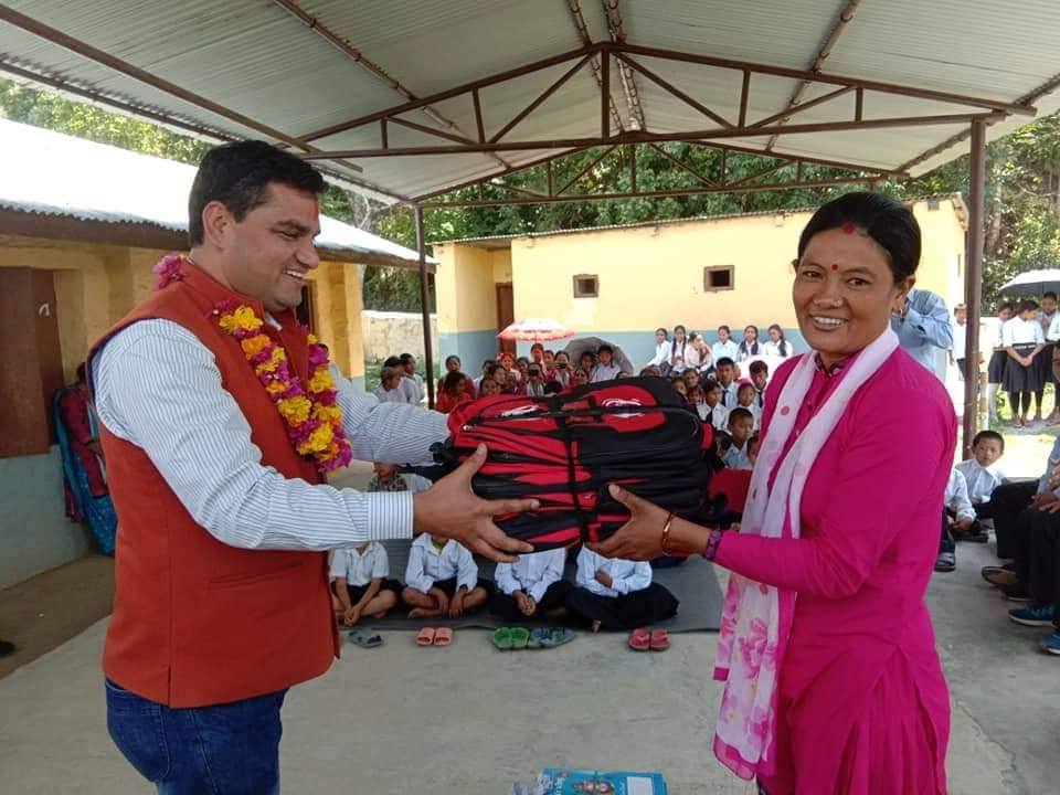 नेता पौडेलले तीन वटै विद्यालयमा अध्ययनरत विद्याथीहरुका लागि झोला र कापी–कलम विद्यालयहरुलाई प्रदान गरेको बताइएको छ ।
