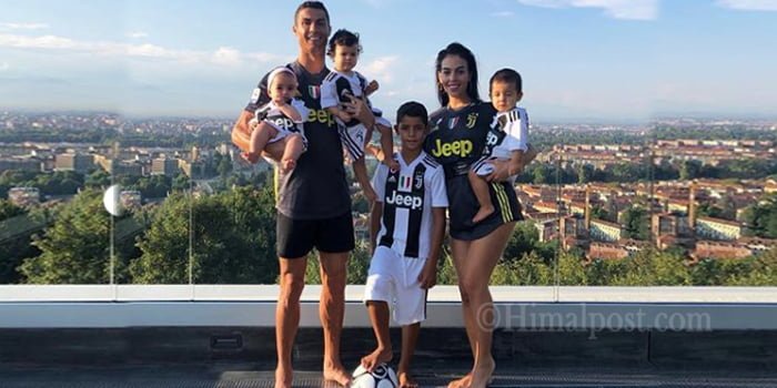 रोनाल्डो र उनकी प्रेमिका जोर्गिना रोड्रिग्वेजले कालो रंगको अवे जर्सी लगाएका छन् । यस्तै तीन छोरा र एक छोरीले युभेन्टसको चर्चित कालो–सेतो चेक भएको जर्सी लगाएका छन् ।