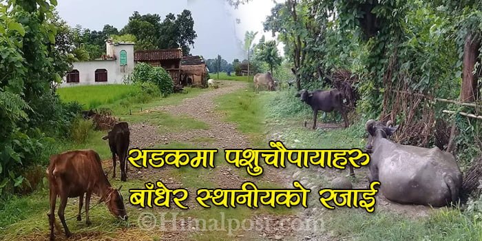 सडकमा पशुचौपायाहरु बाँधेर स्थानीयको रजाई - Himal Post Himal Post