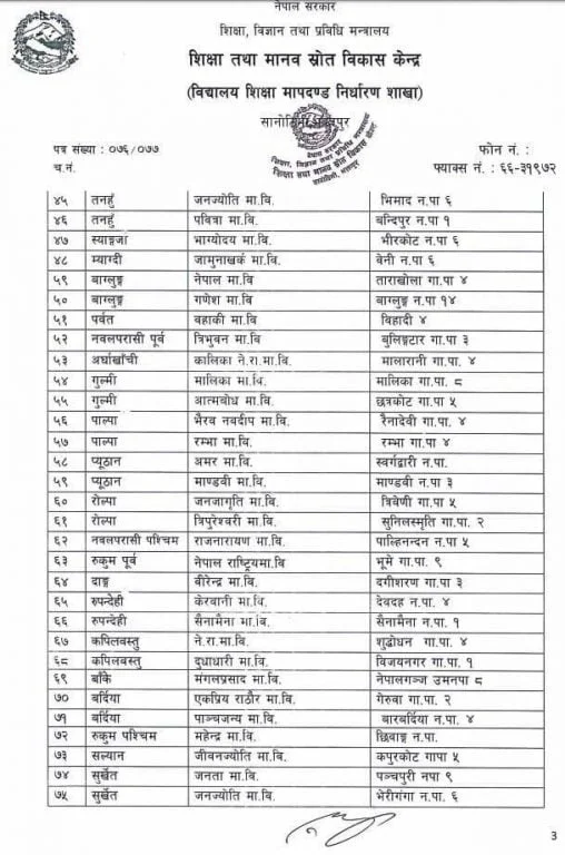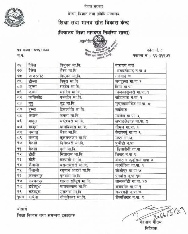 यी हुन् सरकारले छानेका देशभरका १ सय नमूना विद्यालयहरू