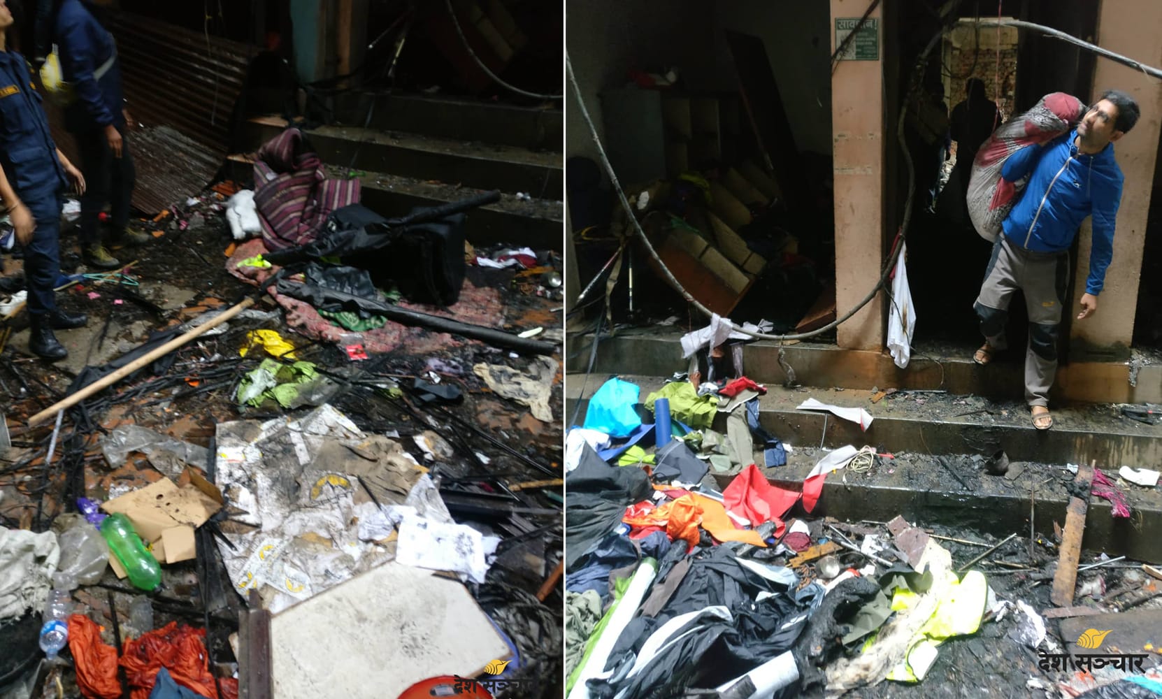 प्रहरीका अनुसार आगो लागेपछि हिमाल आरोहणका क्रममा प्रयोग गरिने अक्सिजन ग्यास सिलिन्डर विस्फोट हुँदा स्थानीयबीच भागाभाग चलेको थियो ।