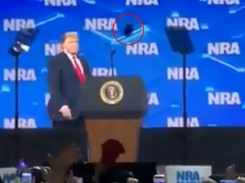 मोबाइल ट्रम्पभन्दा टाढा गएर खसेको थियो । यो कार्यक्रम नेशनल राइफल एसोसिएसन (एनआरए) ले आयोजना गरेको थियो ।