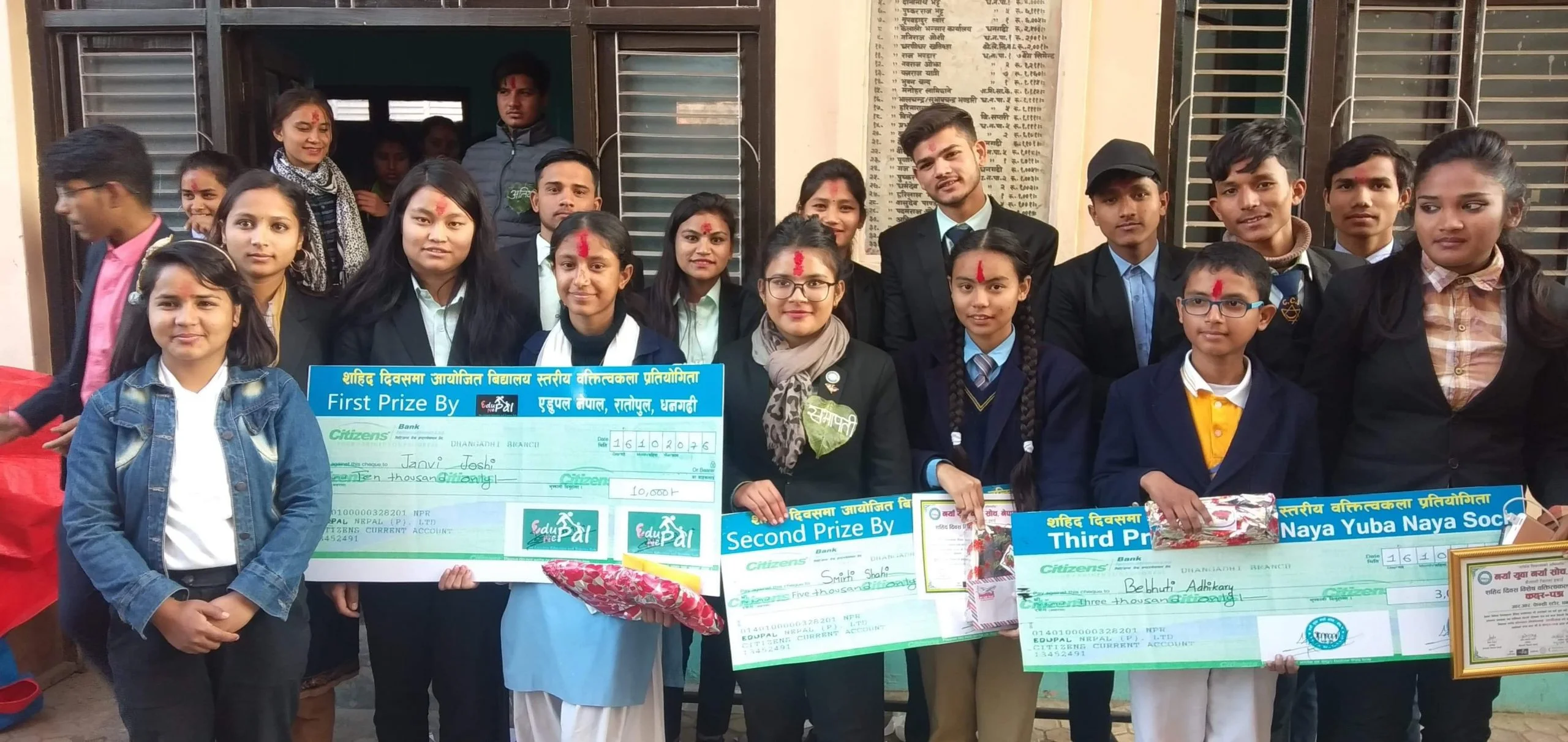 प्रतियोगितामा प्रथम स्टेपिङग स्टोन एकेडेमीकि जानभी जोशी , द्दितिय एश्वर्य निकेतन एकेडेमीकि स्मृति शाही र तृतीय दुन एकेडेमीका बिभुती अधिकारि भएका छन् । प्रथम हुनेले १० हजार नगदसहित एडुपल नेपाल बाट १०० प्रतिशत छात्रवृत्ति ,द्दितियले ५ हजार नगदसहित ५० प्रतिशत छात्रवृत्ति र तृतीयले ३ हजार नगदसहित २५ प्रतिशत छात्रवृत्ति पुरस्कार प्राप्त गरेका छन् ।