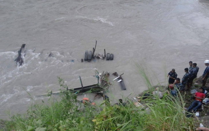 चितवन, १० भदौ । रौतहटको गौरबाट पोखरातर्फ जाँदै गरेको रात्रिबस आज बिहान नारायणगढ–मुग्लिन सडकखण्डको चण्डिभञ्ज्याङ गाउँ विकास समितिको कालीखोला नजिकैबाट त्रिशूली नदीमा खस्दा २० जनाको घटनास्थलमा नै मृत्यु भएको छ भने १७ जना घाइतेको उद्धार भएको छ ।