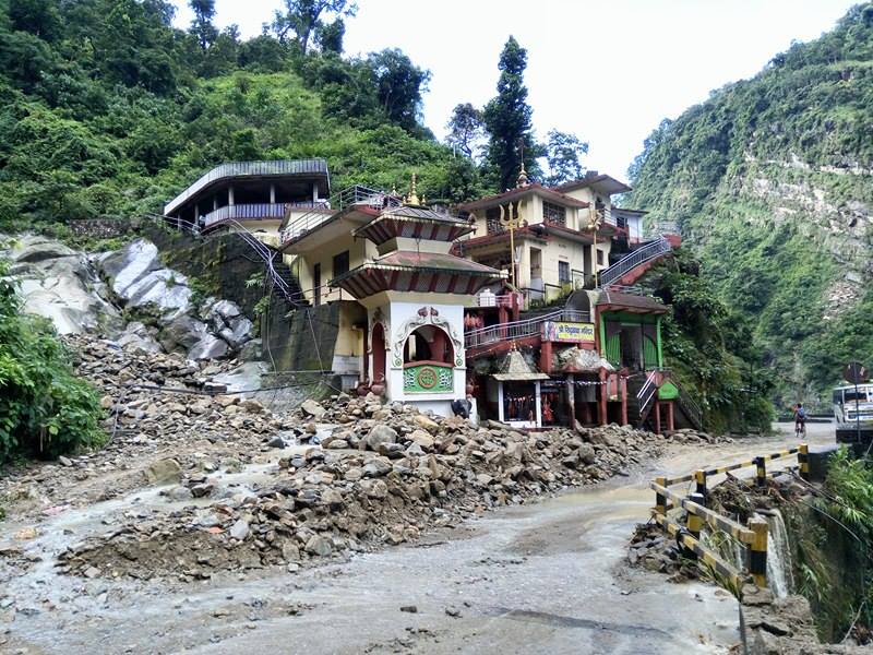 निरन्तरको बर्षाका कारण पाल्पाको सिद्धबाबामा ढुंगे पहिरो