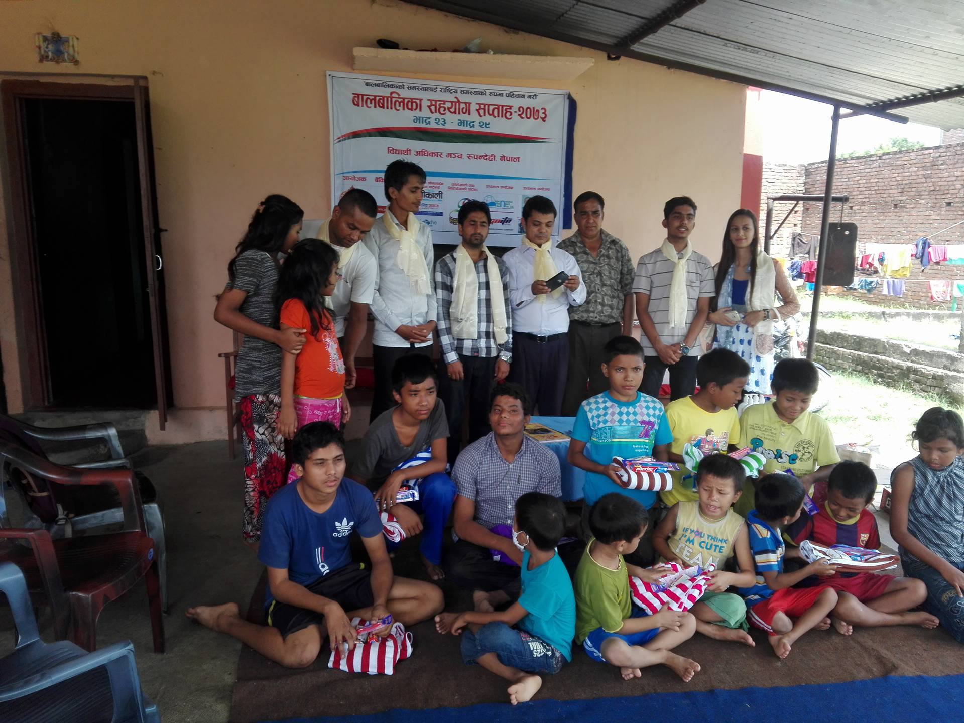 बुटवल, २८ । बालबालिका सहयोग सप्ताह–२०७३ अन्तर्गत आज विद्यार्थी अधिकार मञ्च, रुपन्देहीले तिलोत्तमा नगरपालिका–२०, कोटिहवा, रुपन्देहीको अविनाश अनाथ आश्रममा एक कार्यक्रम गरी विविध सामग्री वितरण गरेको छ ।