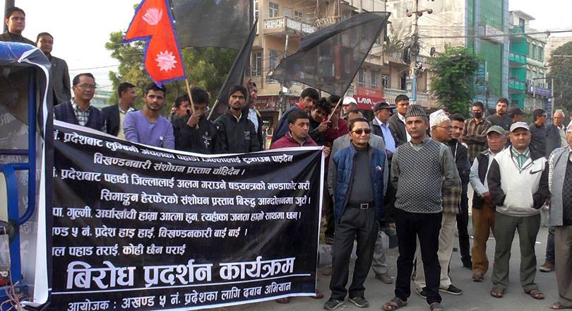 प्रदेश नम्बर ५ मा परेका जिल्लाहरुलाई कुनै पनि हालतमा टुक्र्याउन नहुने भन्दै बुटवलमा बिरोध गरिएको छ ।