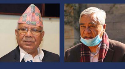 प्रधानमन्त्री शेरबहादुर देउवा र नेकपा एकीकृत समाजवादी पार्टीका अध्यक्ष माधवकुमार नेपालबीच भेटवार्ता भएको छ । शनिबार प्रधानमन्त्री निवास बालुवाटारमा उनीहरूबीच भेटवार्ता भएको हो । नेकपा माओवादी केन्द्रका अध्यक्ष पुष्पकमल दाहाल