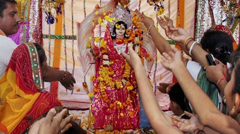 दशैंको दोस्रो दिन , भगवतीको पूजा गरिदै