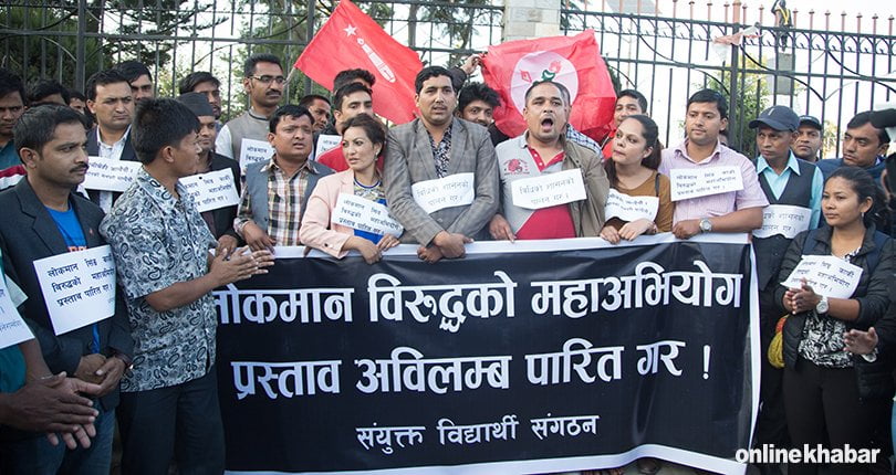 आइतबारको संसद बैठकमा महाअभियोग प्रस्ताव पेश हुँदै गर्दा विद्यार्थीहरुले माइतीघर मण्डलादेखि नयाँबानेश्वरसम्म प्रदर्शन गर्न लागेका हुन् ।