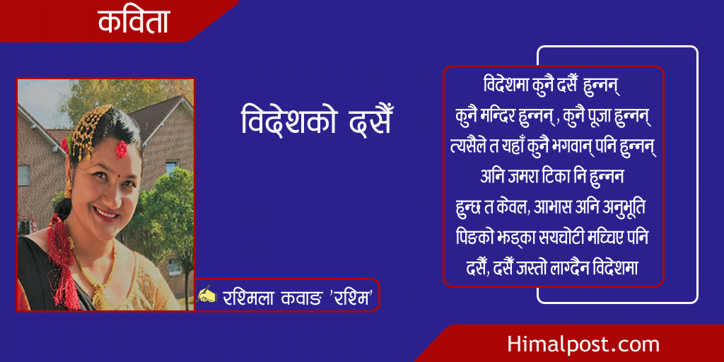 -खिमु केसी परदेश हुनेले आकाशबाट पनि जमिन हेर्छयुरोप,अमेरिका अनि चीन हेर्छ ।। छोरालाई परदेश जाने मनै थिएनघरमा बाको थाप्लामा रिन हेर्छ ।। भन्दियो सजिलै उसले सबै बिर्स्योजसले सधै घर फर्कने