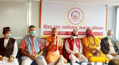 काठमाडौं- व्यक्ति–व्यक्तिमा हिन्दू भाव जागरण गर्दै समाजमा सुप्त रहेका स्वाभिमान उकास्नका लागि हिन्दू राष्ट्र स्वाभिमान जागरण अभियानको शुभारम्भ गरिएको छ । ललितपुरको एकान्तकुनास्थित केन्द्रीय कार्यालयमा आयोजित उद्घाटन कार्यक्रमबाट अभियान शुभारम्भ