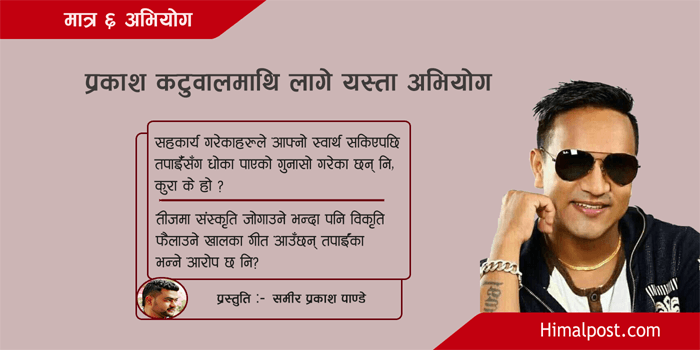 प्रस्तुति : समीर प्रकाश पाण्डे लामो समयदेखि नेपाली गीतसङ्गीतको क्षेत्रमा उत्कृष्ट गीतहरू पस्केर आम दर्शक श्रोताहरूमाझ आफ्नो लोकप्रियता कमाउन सफल भएका नेपाली गीत सङ्गीतका एक बलिया खम्बा हुन् सर्जक तथा