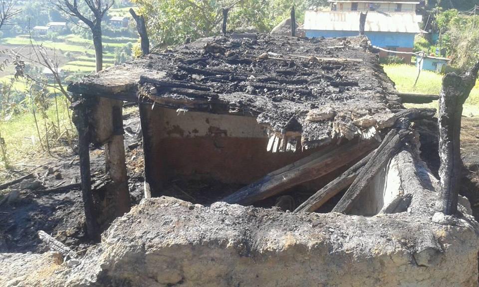 धातिवाङमा गएराती अागाेले घर डढ्याे, २ लाखकाे क्षति