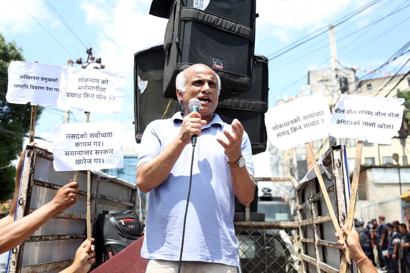 KATHMANDU, Aug 20: Dr Govinda KC, who has been fighting against the anomalies and aberrations in the medical education and health sector, joined a demonstration held in front of the Prime Minister’s official residence in Baluwatar today.