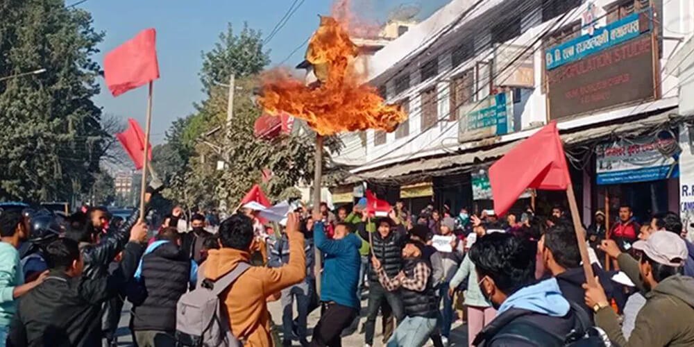 काठमाडौँ । एकीकृत समाजवादी निकट विद्यार्थी सङ्गठन अनेरास्ववियूले शिक्षा विज्ञान तथा प्रविधिमन्त्री शिशिर खनालको पुत्ला दहन गरेको छ ।