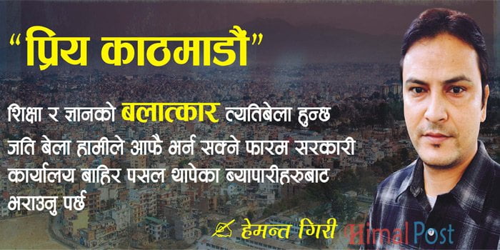 म आएको वर्षदिन पुग्न लाग्यो काठमांडौ, मलाई टोकियो भन्दा कैयौं गुणा प्यारो तिमी लाग्छौ किनकि यो ज्यानमा त्यहिंको सुवास छ । म हरदिन हर क्षण तिमीलाई सम्झिरहन्छु । अझ भनूं भने कतिपय उल्लेखित जस्तै अवस्थाहरुमा तिमीलाई नसम्झेको पल नै हुँदैन । तिमीलाई सम्झिंदै गर्दा म ती सब पात्रलाई सम्झिन्छु जो इच्छाले न्यूयोर्क,लंडन,सिडनी पुगेका होलान अनि बाध्यताले खाडी पनि पसेका होलान । सबको प्रीत तिमीसंग बराबरीको हो । तर,प्रिय काठमांडौ, प्रीतले रीत नपुर्याउने हो कि, प्रीतले बाटो मोड़ने हो कि अनि प्रीतले मात्र पुग्दो रहेनछ भनेर तिम्रा अनुरागीहरु सुबिधाको लागि बिद्रोह गर्दै न्यूयोर्क,लंडन,टोकियो वा सिडनीका गल्लीहरुमा हराउने हुन कि भन्ने डरले सताउँछ। ‘सोल र सिस्टम'(आत्मा र ब्यबस्था) मिल्न सके कति जाती हुन्थ्यो नि काठमांडौ? तिमिलाई प्रेम गर्नेहरु तिमीमा केवल सिस्टम खोज्छ्न बाँकि त तिमी संसारकै सुन्दर राजधानी हौ, शीतल र उदार शहर हौ, शंका नै छैन ।
