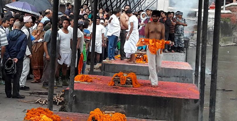 पशुपति आर्यघाटमा हिन्दू परम्पराअनुसार गरिएको अन्तिम संस्कारमा गृहमन्त्री बिमलेन्द्र निधी, मुख्यसचिव सोमलाल सुवेदी लगायत सरकारी अधिकारीहरुको उपस्थिति थियो ।