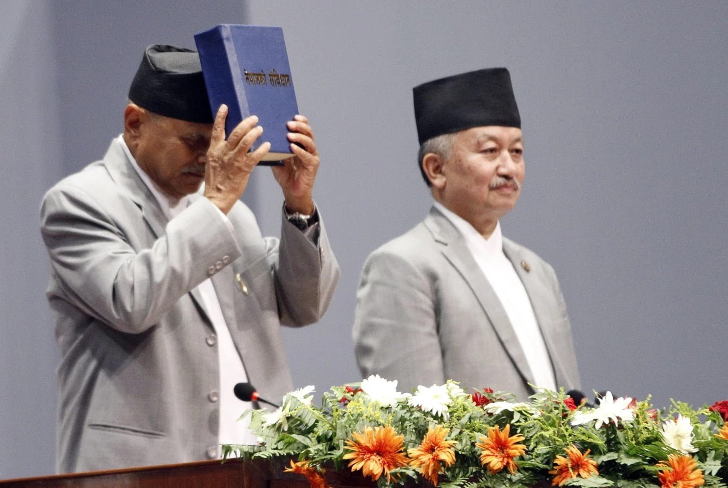 संविधान जारीभएपछि तत्कालीन कांग्रेस सभापति सुशील कोइरालाले राजीनामा दिएपछि २४ असोजमा एमाले अध्यक्ष ओली प्रधानमन्त्री बने । त्यसपछि १९ साउनमा माओवादी केन्द्रका अध्यक्ष प्रचण्ड प्रधानमन्त्री भएका छन् ।