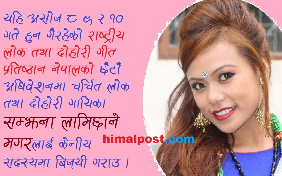 नेपाली लोक गित संगीत प्रेमी दर्शक श्रोताहरुका लागी र कलाकारहरुका लागी सम्झना लामिछाने मगर को नाम नौलो भने पक्कै पनि हैन । तर यही असोज ८ ९ र १० गते काठमाण्डौ को कमलादीमा हुन गैरहेको राष्ट्रीय लोक तथा दोहोरी गीत प्रतिष्ठान नेपाल केन्द्रिय समितीको लागी छैटौ माधिवेसन बाट भने नौलो हुने देखिएको छ । किनभने सम्झनाले आफु पनि उमेद्बार बन्ने औपचारिक घोषणा गरे लगत्तै धेरै कलाकारहरुले समर्थन गरेका छन ।