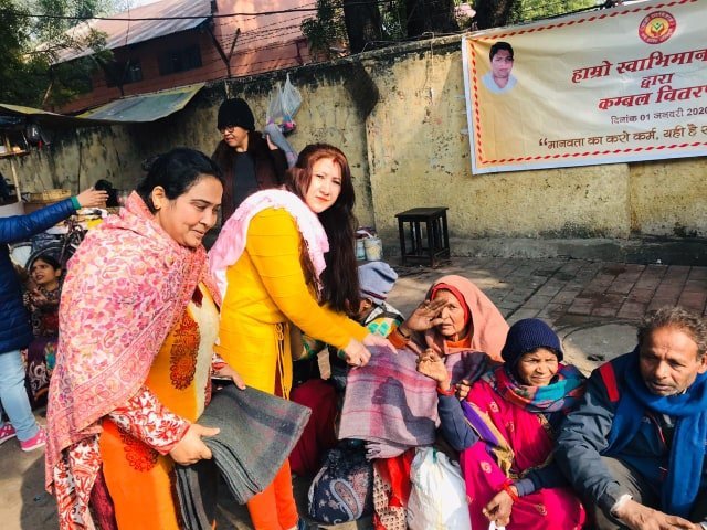 नयाँ दिल्ली- हाम्रो स्वाभिमान ट्रस्टले नयाँवर्षको अवसरमा भारतको राजधानी दिल्लीमा गरिब तथा विपन्नहरूलाई न्यानो कपडा वितरण गरेको छ ।
